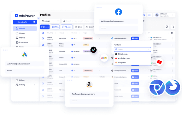 Privacy browser protecting data from tracking on sites like Google, Facebook, and Amazon. Operates like Chrome, enabling marketing agencies and affiliates to securely manage multiple accounts without verifications or bans, supporting diverse commercial needs.