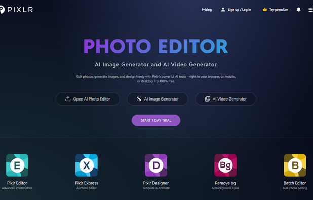 Comprehensive online editor offering filters, frames, text, stickers, collage creation, graphic design, templates for social media, batch editing, photo retouching, mobile and desktop access, regular updates, and direct sharing to social channels.