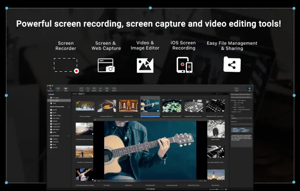 Advanced screen capture and recording tool enabling image or video captures directly from your screen. Includes editing features like callouts, transparency, and effects to enhance visuals. Organize and easily share creations through documents, presentations, or favorite applications.