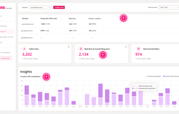 Cheq Essentials is a software that uses advanced algorithms and real-time monitoring to detect and block harmful sources, conducting over 2,000 security tests per visit.