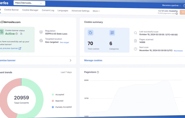 Manages website cookie compliance with customizable consent banners, granular controls, audit-ready consent logs, automatic cookie scanning, and multi-platform compatibility.