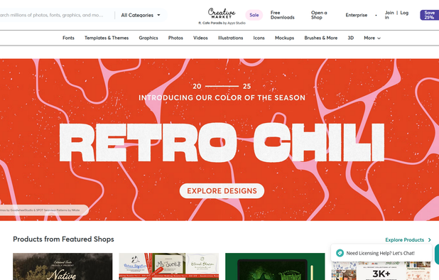 Earn commissions by referring new customers to Creative Market's marketplace of design assets (fonts, graphics, themes). Partners get 10% on all purchases for a year from referrals; affiliates get 15%/5% structure within 30 days.