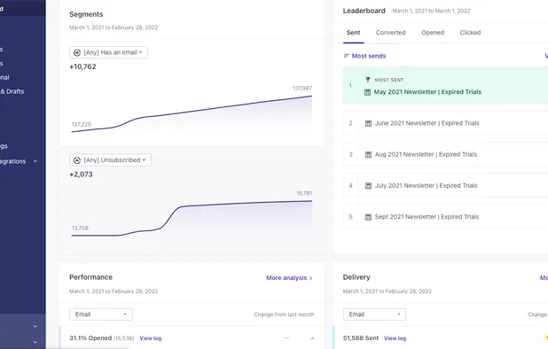 Automate email, SMS, push, and webhooks using behavioral data, advanced segmentation, analytics, and A/B testing for tailored customer communications.