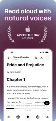 Converts printed or digital text, PDFs, and web articles into spoken audio with natural-sounding AI voices, adjustable listening speeds, cross-device syncing, offline access, support for scanning photos, and tools for organizing and managing content.