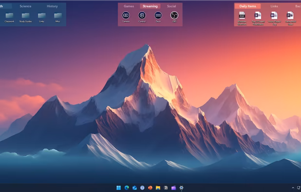 Automates desktop organization for Windows by grouping files, apps, and folders into customizable boxes, supporting appearance adjustments, instant hotkey access, multi-page desktops, double-click hiding, Folder Portal, and fast search functionality.