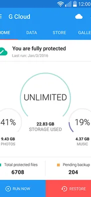 G Cloud is simple backup app that continuously protects contacts, photos, videos, and calendars to a secure cloud locatio.n