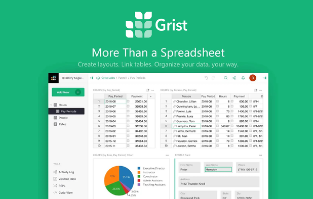 Grist is a fast-growing free software that allows users to build no-code apps with a spreadsheet.