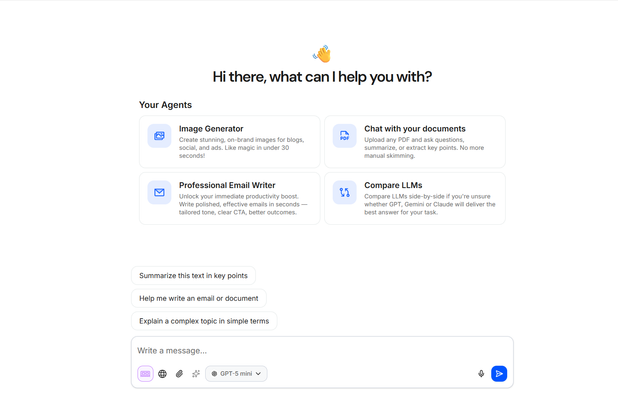 Confidential AI chat assistant delivering writing, summarization, voice transcription, email handling, and document search tools, all hosted exclusively in Switzerland with open source models, data sovereignty, and compliance with GDPR and FADP standards.