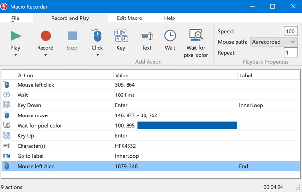 Captures mouse actions and keystrokes for infinite replay, allows customization, edits with macro editor, supports pixel detection, event waits, and smooth automation.