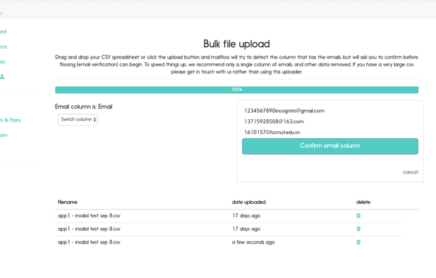 Email list validation tool: Simple, fast & accurate. DeBounce service allows you to upload and validate lists of email addresses quickly and in a secure way. All you have to do is upload an email list to it's web interface. DeBounce also offers API.
