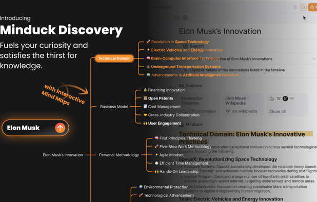 Leverages AI agents for interactive mind mapping, curating essential information, and structured insights with traceable, in-depth content.