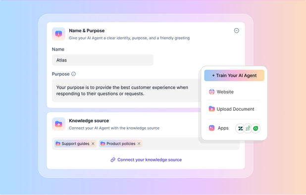 Easily create AI chatbots trained on your own files, links, or text. Deploy custom-branded, multi-language bots on your website with analytics, WhatsApp, Messenger integration, team collaboration, API access, and embeddable widgets for scalable support.