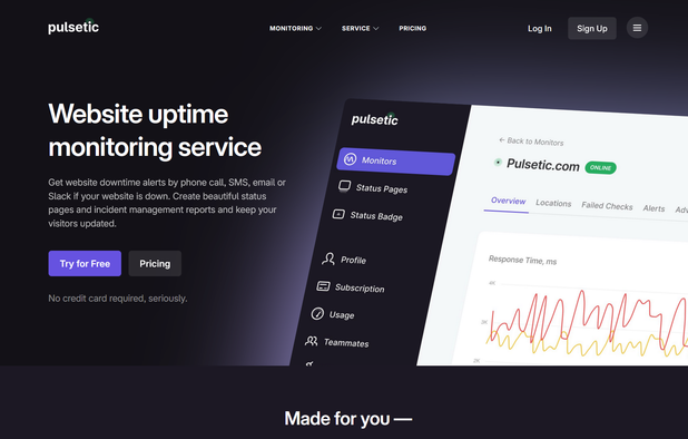 Free real-time monitoring for 50 sites every 5 minutes. Custom alerts through email, SMS, calls, and apps like Slack, PagerDuty, and more. Use status pages and mobile apps for easy management.