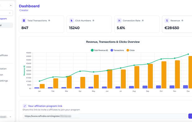 Purpose-built for SaaS affiliate programs, this platform enables rapid affiliate portal setup, two-way Stripe integration, recurring subscription referral tracking, customizable commissions, analytics, and automatic affiliate payouts, all with minimal technical effort.