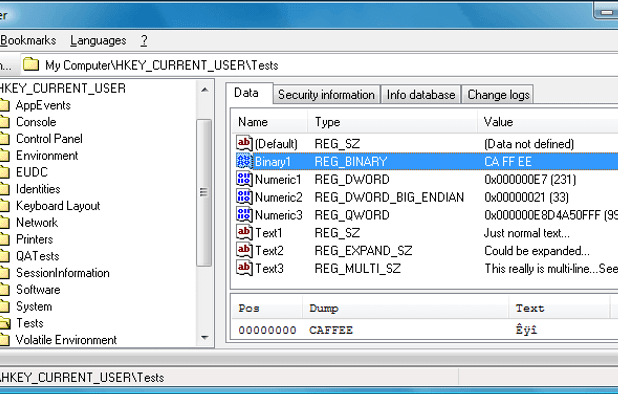 RegAlyzer is a tool to browse and change the registry. It was created because of a few features we missed in the original regedit tool, from support for exotic value types over background and regular expression search to better bookmarks, displaying .