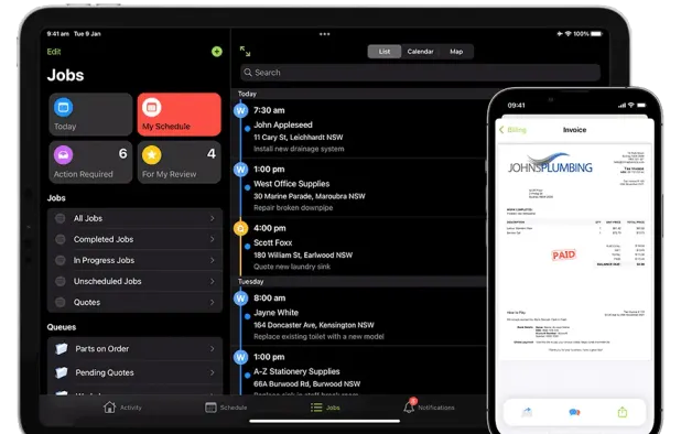 ServiceM8 will guide you from job quoting right through to invoicing and payment. You will have real-time information on what jobs are currently active, where and when staff are at client sites.