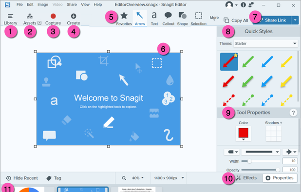 Comprehensive screenshot and screencast tool offering full-screen, window, or region captures with a built-in editor. Supports cropping, resizing, labels, and effects, with integration for popular services. Free version includes some branding and is limited to 15s screen casts.