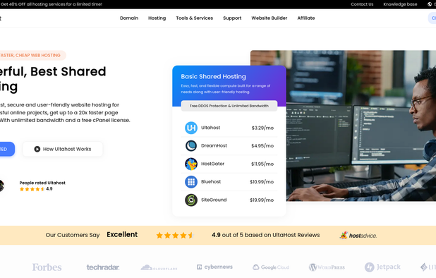 Earn up to 60% commission per sale by promoting UltaHost hosting services via unique referral links. Access dashboard for real-time tracking, promotional materials like banners and links. No approval required, free to join, suitable for websites, YouTube, social networks.