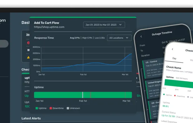 Free real-time monitoring for 50 sites every 5 minutes. Custom alerts through email, SMS, calls, and apps like Slack, PagerDuty, and more. Use status pages and mobile apps for easy management.